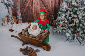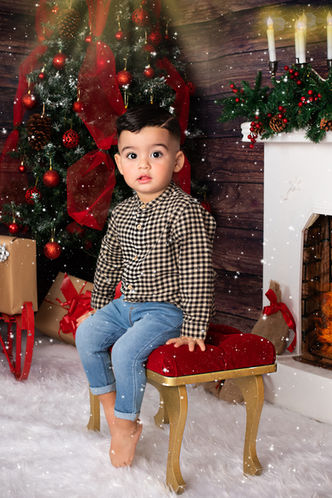 Este escenario, adornado con un majestuoso árbol de Navidad, regalos envueltos en cintas brillantes y detalles encantadores como ositos de peluche y coronas navideñas, te harán sentir como en casa mientras inmortalizamos la alegría y la inocencia de la temporada.